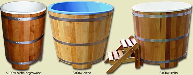 są wanny z drewna krajowego - modrzewia, dębu lub olchy. Wanny drewniane
